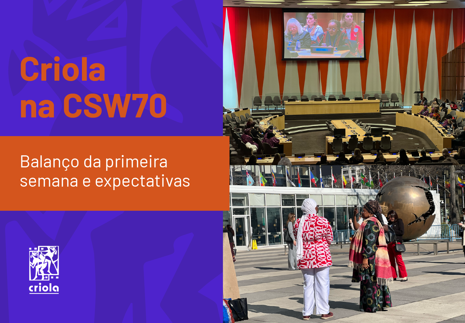 Criola participa da primeira semana da CSW70 e reforça incidência por justiça e direitos das mulheres negras Criola realiza oficina sobre direitos sexuais e reprodutivos para Jovens Defensores Populares Plenária na ONU rejeita retirada de direito ao aborto de documento sobre igualdade de gênero Documento de Posição do People of African Descent Stakeholder Group para a CSW70 Aborto e justiça reprodutiva em foco: Criola promove formação para lideranças negras em saúde sobre a temática Dia da Mulher: CRIOLA reforça luta por autonomia e Bem Viver das mulheres negras no Brasil