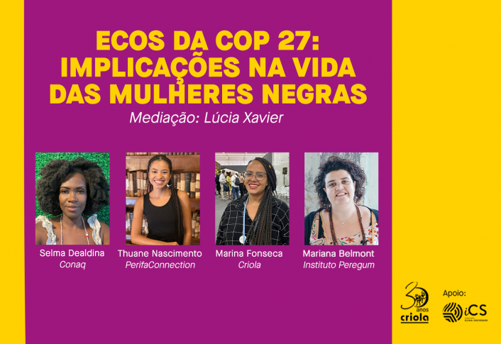 Elencar os próximos passos rumo à ação política verdadeiramente centrada nas contribuições das mulheres negras cis e trans em busca de Justiça Climática. Esta é a proposta do debate “Ecos da COP27: implicações na vida das mulheres negras”, que Criola realiza nesta quarta (14/12), a partir das 18h, em seu canal do YouTube.